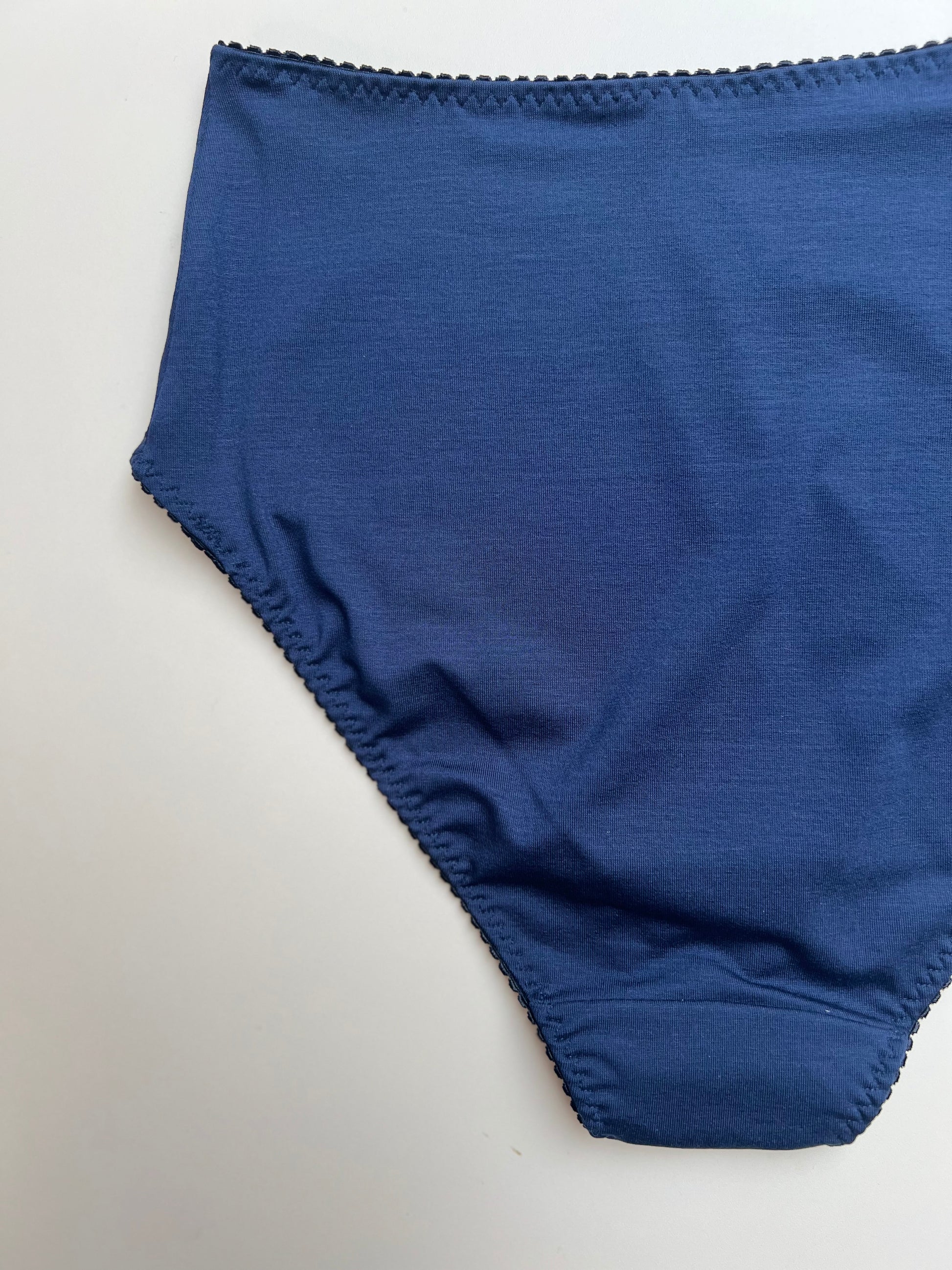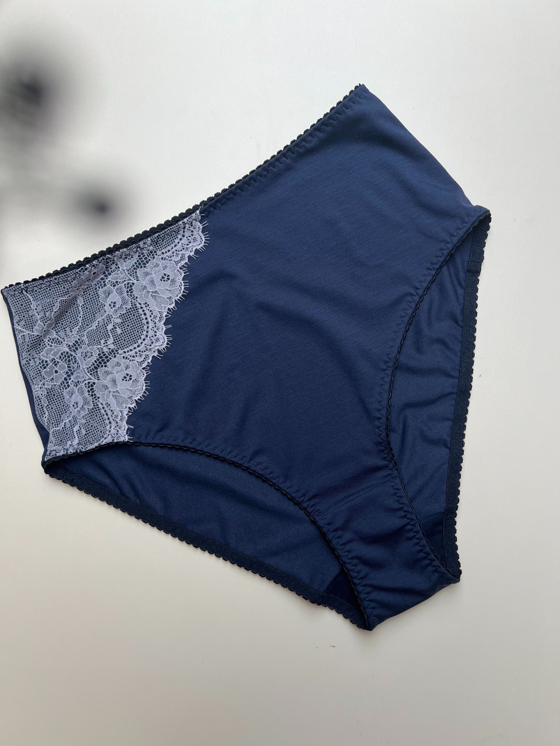 Women’s High-Waist TENCEL™ panties – Dark blue with lillac lace